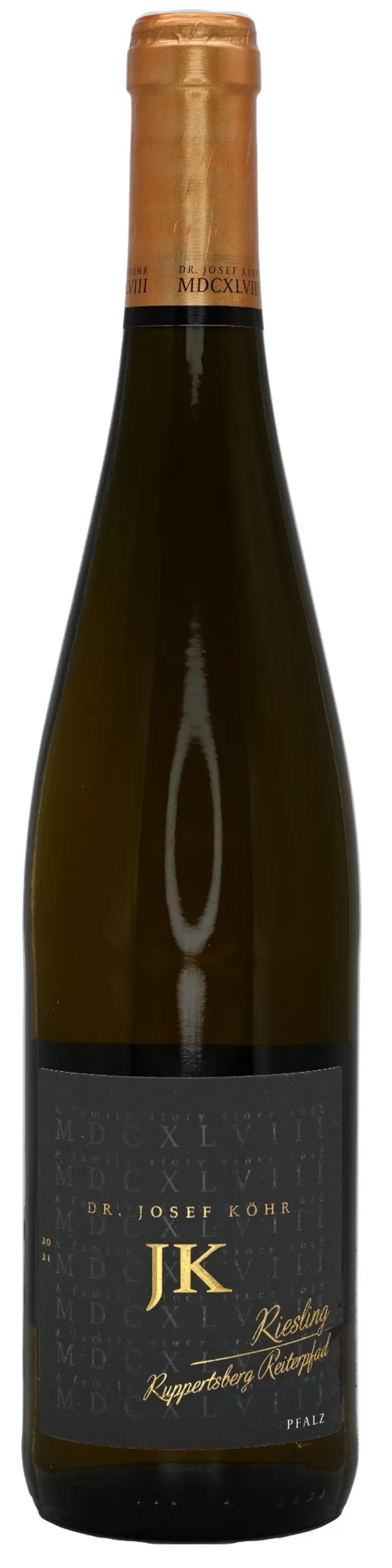 Issu de la prestigieuse parcelle Ruppertsberger Reiterpfad, l’une des meilleures expositions du domaine Weingut Dr. Josef Kohr, ce Riesling est un vin blanc sec premium, parfaitement représentatif de la grande tradition viticole de la région de Pfalz. Cette zone bénéficie d’une exposition légèrement sudique qui permet une maturation optimale des raisins.